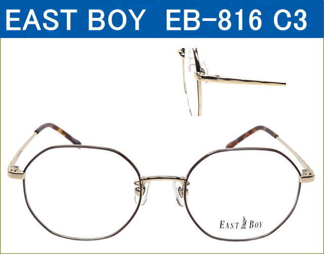 • 送料無料 【EASY BOY】 EB-816 C3 マットブラウン/ホワイトゴールド 度付き眼鏡レンズ付きセット
